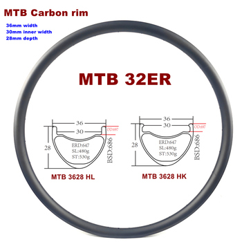 Bikedoc 32ER MBT3628คาร์บอนไฟเบอร์ MTB ขอบจักรยาน36มม. กว้าง30มม. กว้าง28มม. ขอบคาร์บอนจักรยานเสือภูเขาลึก